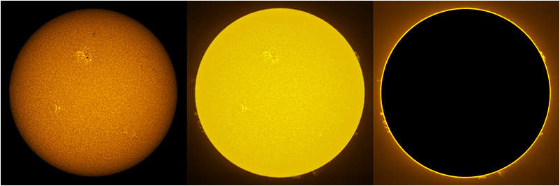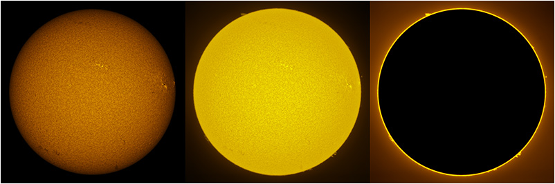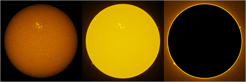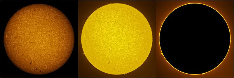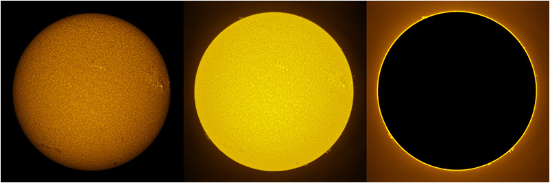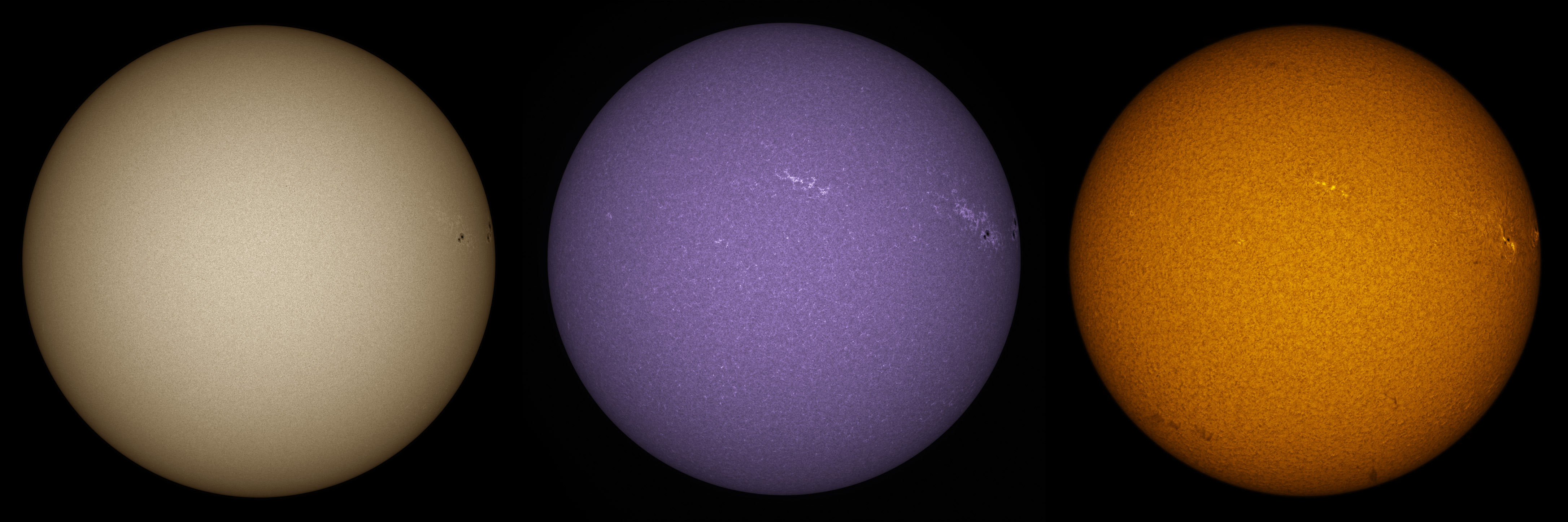 SUN (20210508) WL, CaK & H-alpha (09:00 UTC). TV101 F/5.4, LUNT 1200 CaK Module, SM60, BF30, PGR GRASSHOPPER 3 GS3-U3-28S4