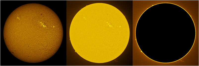 SUN (20210519) WL, CaK & H-alpha (08:30 UTC). TV101 F/5.4, LUNT 1200 CaK Module, SM60, BF30, PGR GRASSHOPPER 3 GS3-U3-28S4