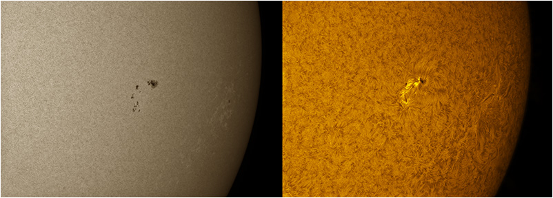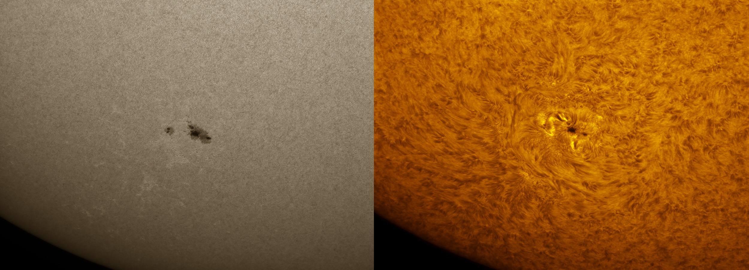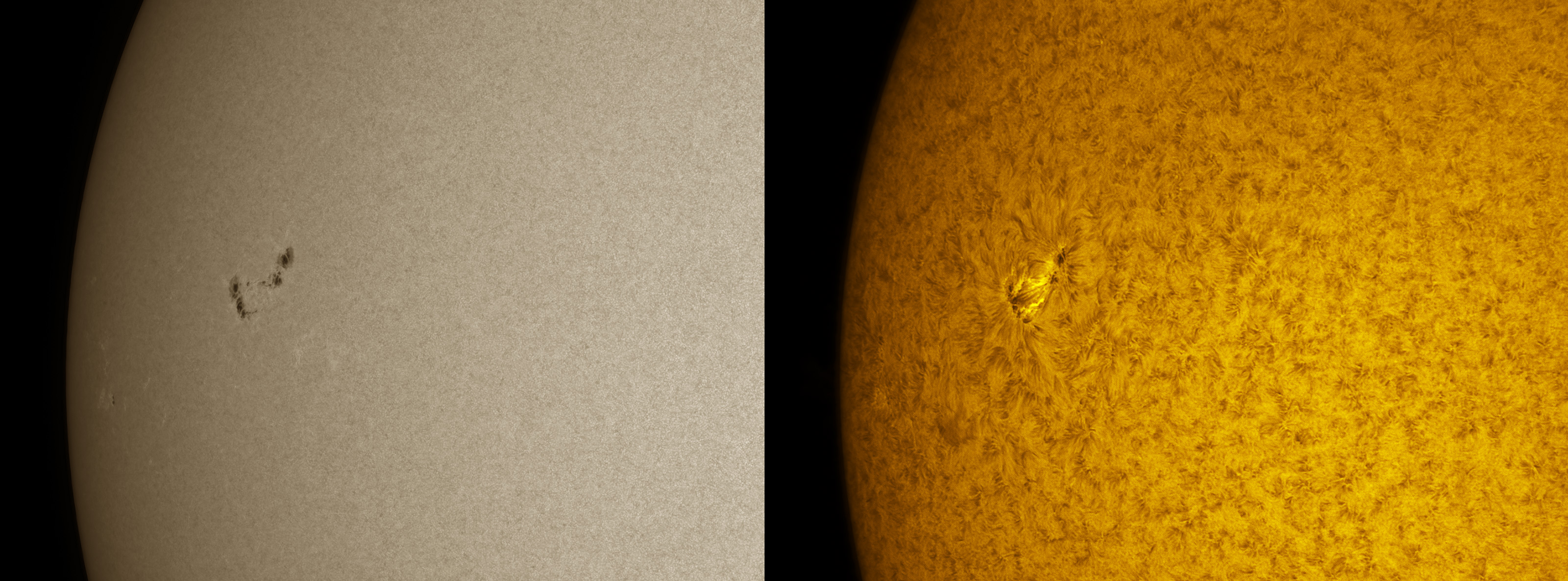 SUN (20210929) WL & H-alpha. LUNT152 F/6, B3400, X2 Barlow (@X1.4), PGR GRASSHOPPER 3 GS3-U3-28S4M