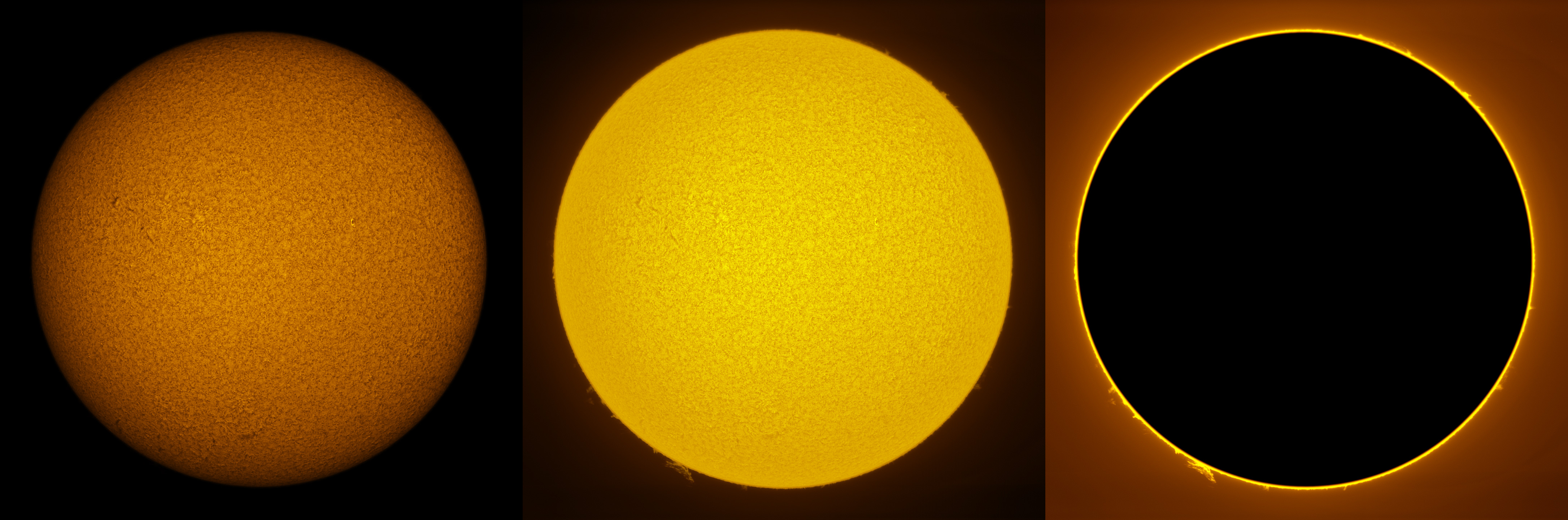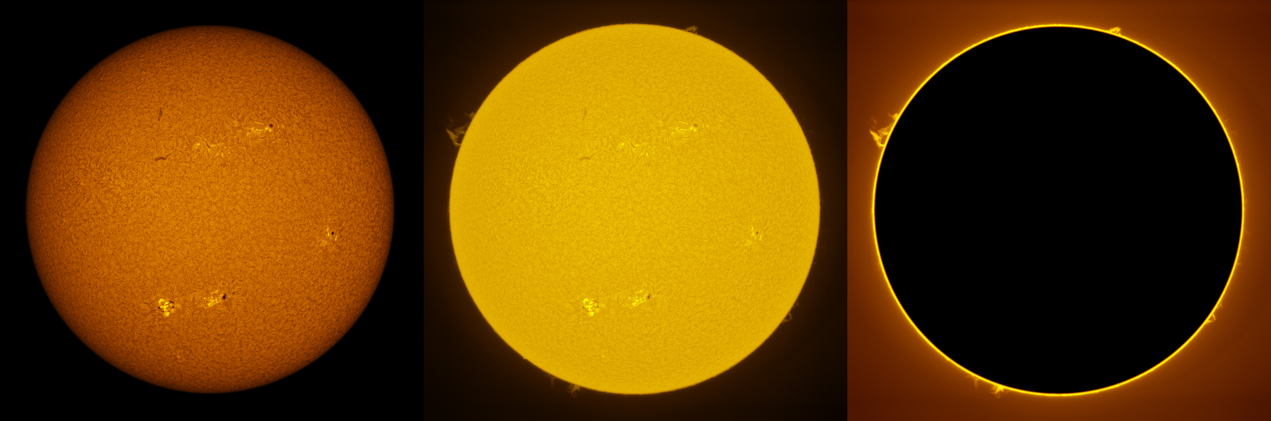SUN (20210924) WL, CaK & H-alpha (13:30 UTC). TV101 F/5.4, LUNT 1200 CaK Module, SM60, BF30, PGR GRASSHOPPER 3 GS3-U3-28S4