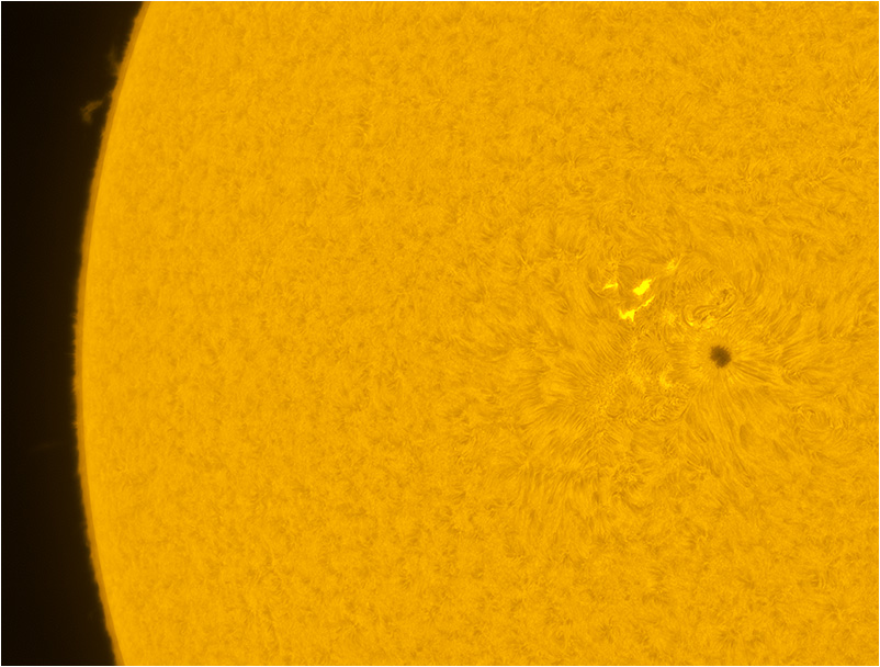 SUN (20211008) H-alpha (10:30 UTC). TV101 F/5.4, DS SM90II/SM60, BF30, PGR GRASSHOPPER 3 GS3-U3-28S4M