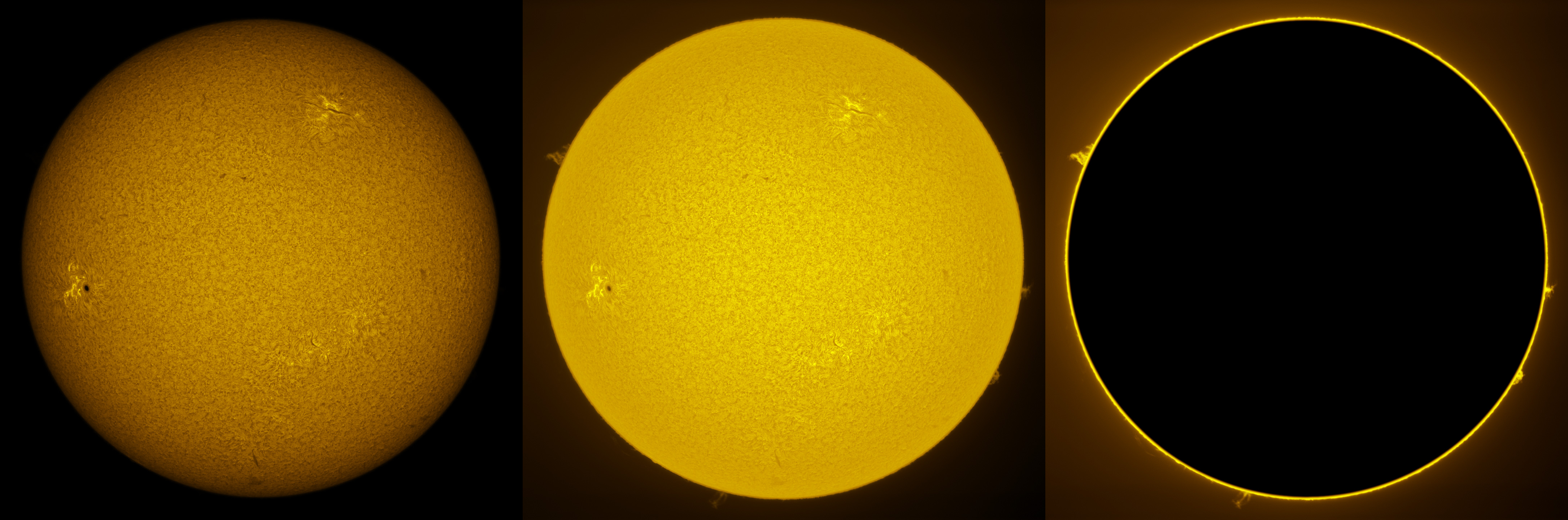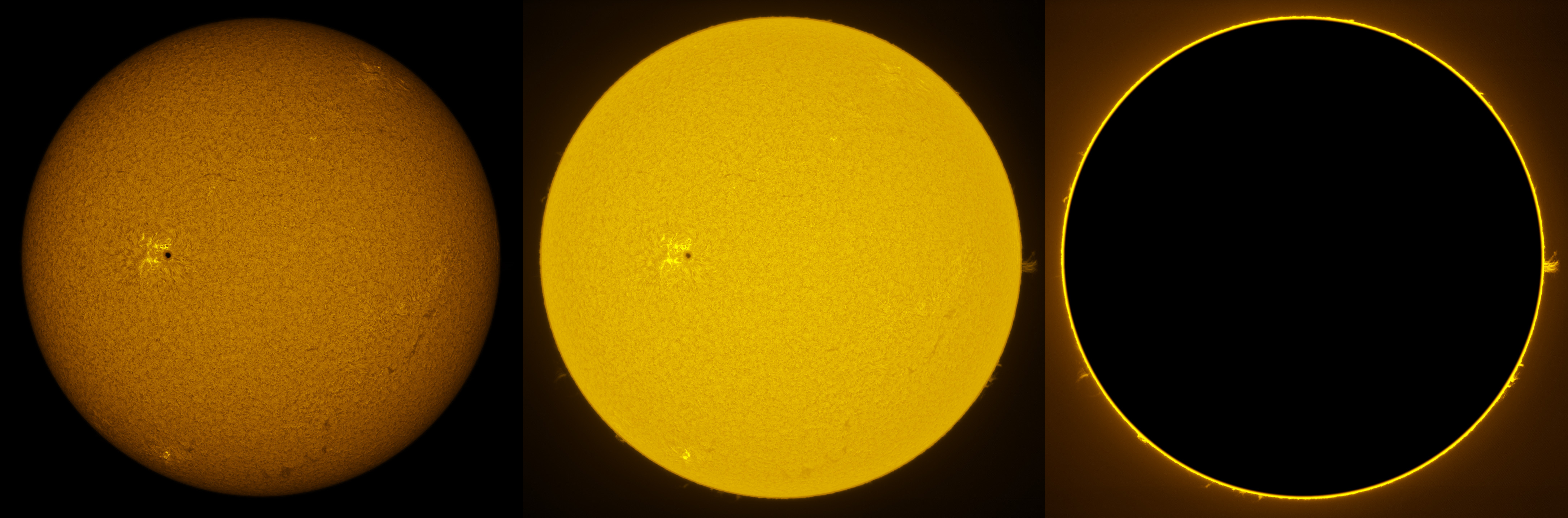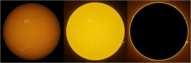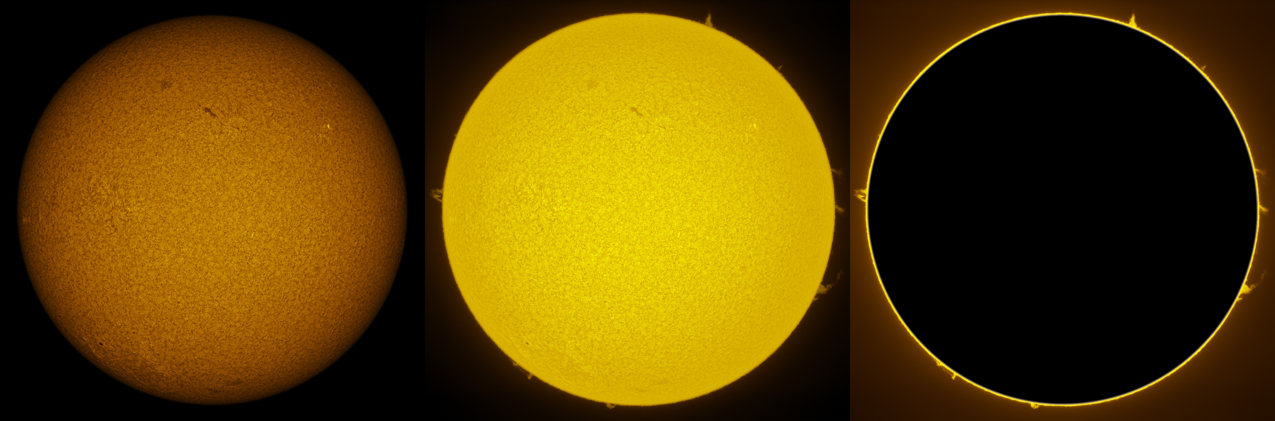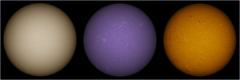 SUN (20211025) WL, CaK & H-alpha. LUNT152 F/6, LUNT152 CaK Module, B3400, X2 Barlow (@X1.4), PGR GRASSHOPPER 3 GS3-U3-28S4M