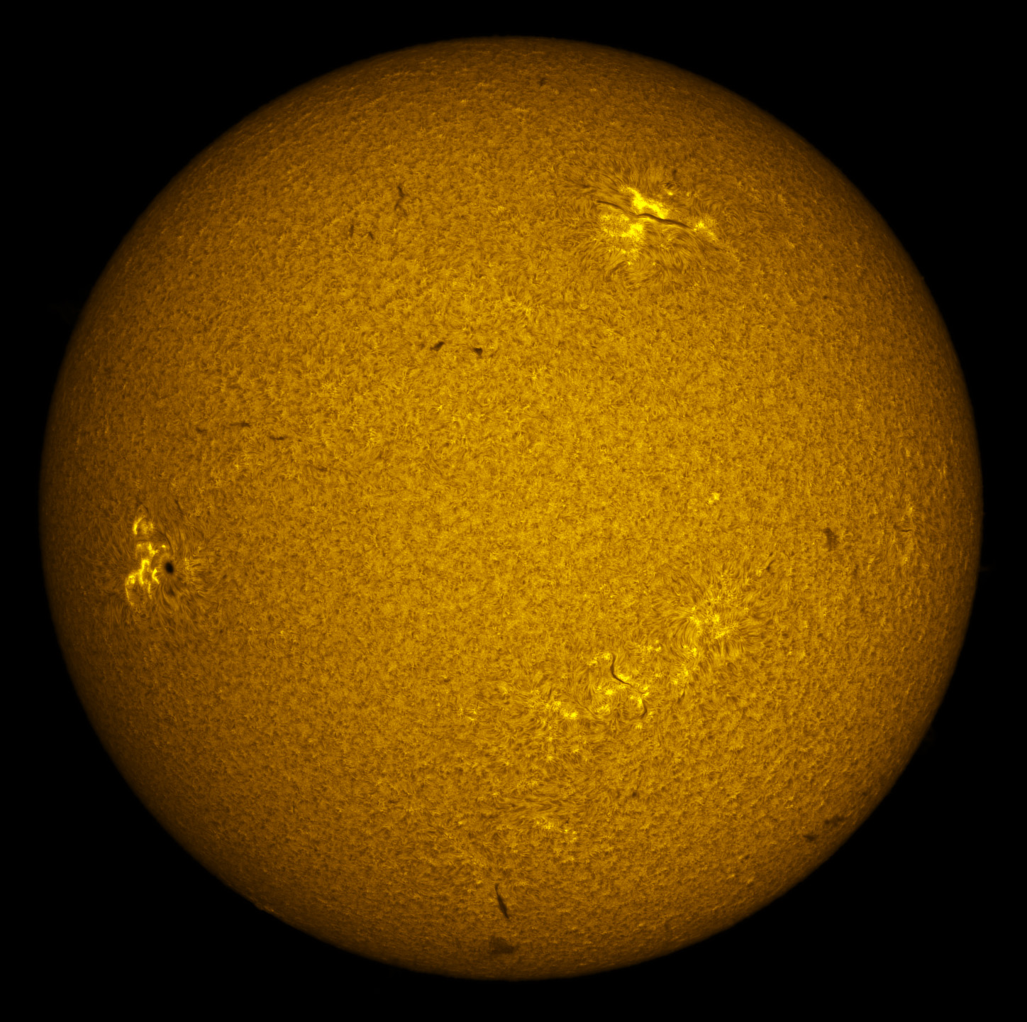SUN (20211025) WL, CaK & H-alpha (11:00 UTC). TV101 F/5.4, LUNT 1200 CaK Module, SM60, BF30, PGR GRASSHOPPER 3 GS3-U3-28S4M