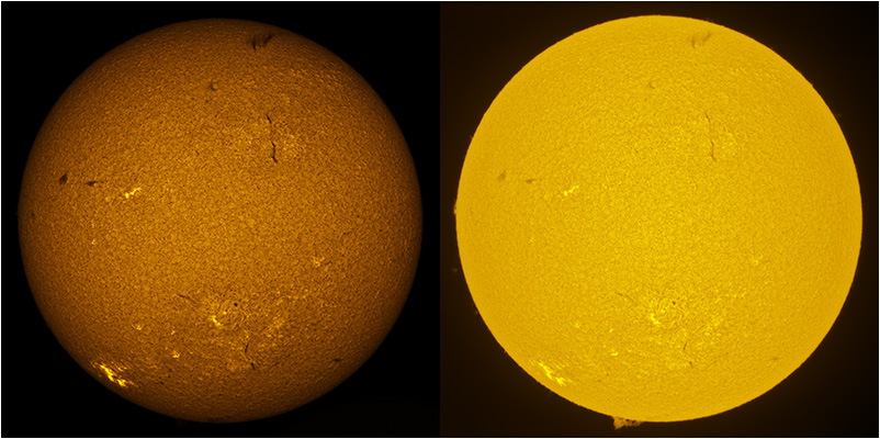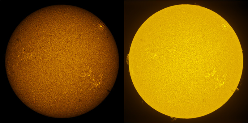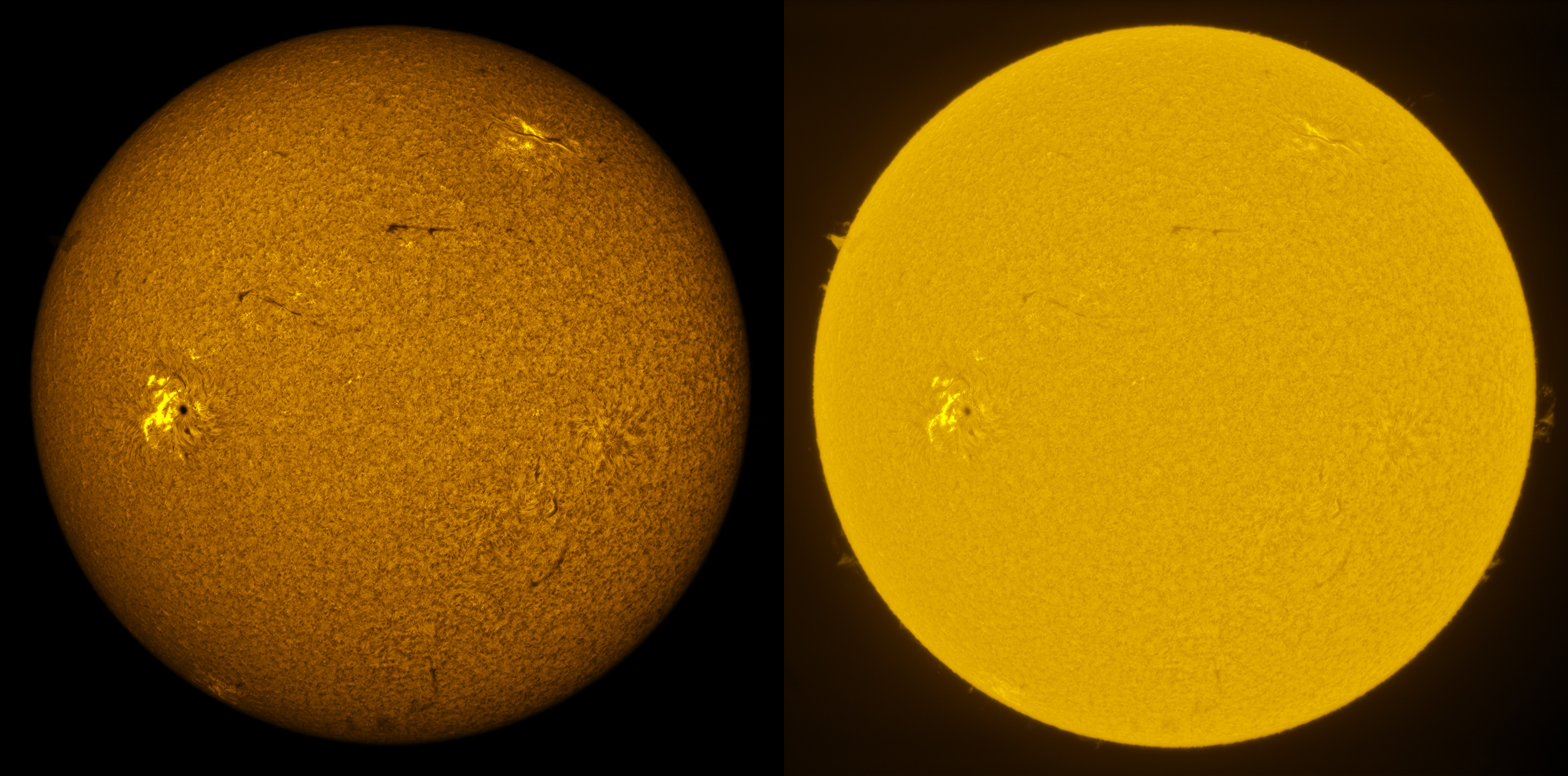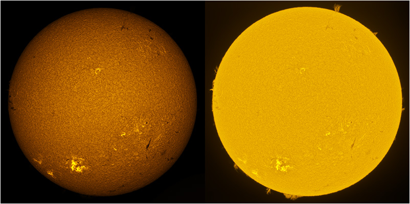 SUN (20211025) WL & H-alpha. LUNT152 F/6, B3400, X2 Barlow (@X1.4), PGR GRASSHOPPER 3 GS3-U3-28S4M