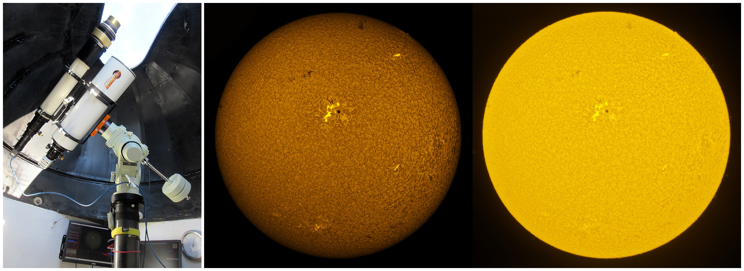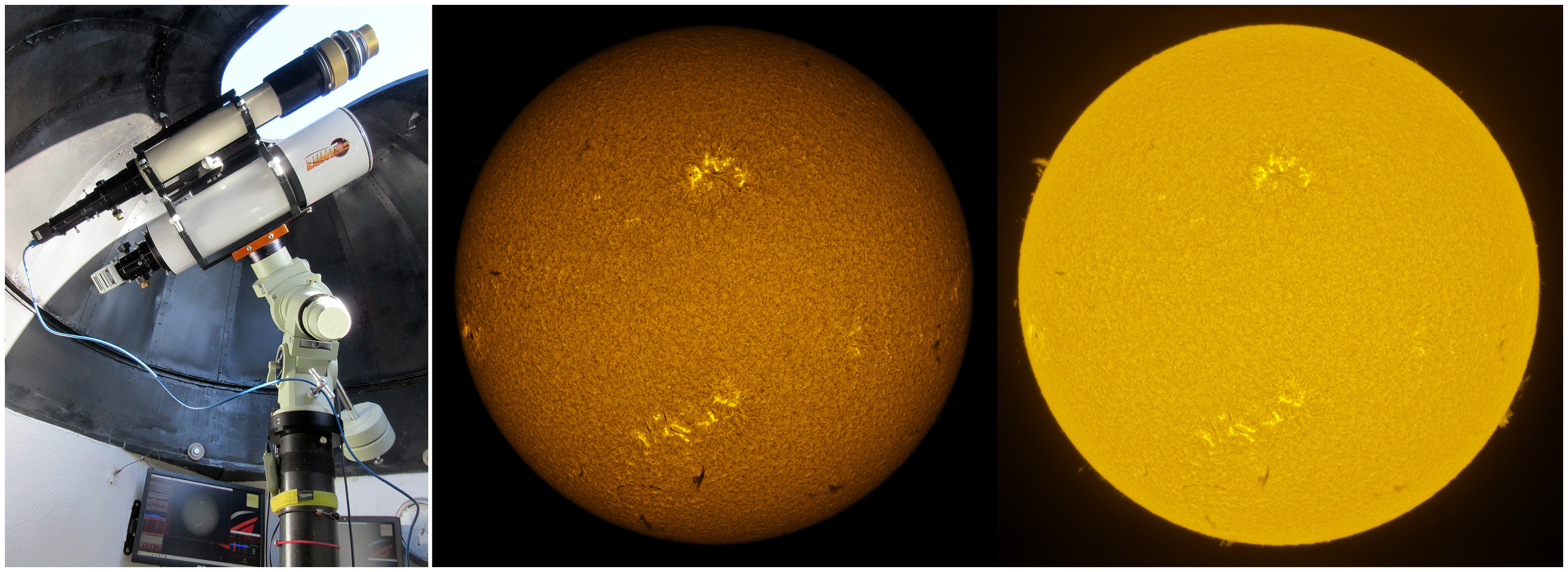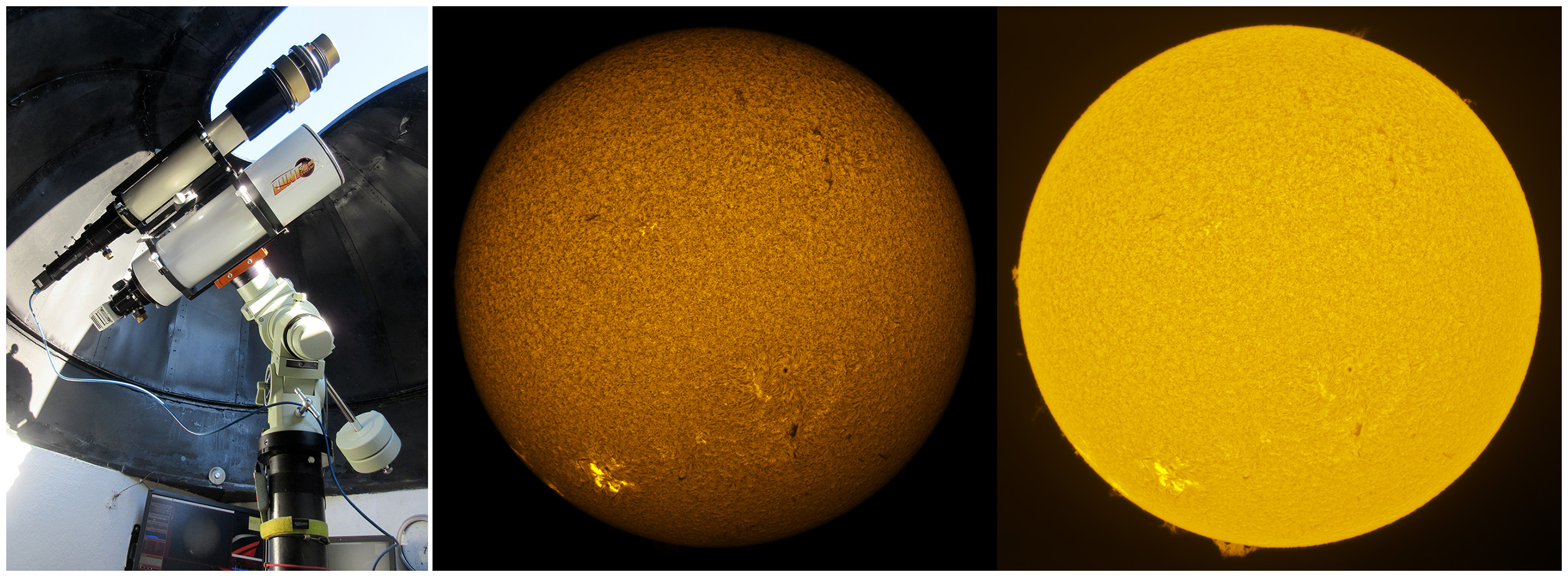 SUN (20211026) WL, CaK & H-alpha (09:00 UTC). TV101 F/5.4, LUNT 1200 CaK Module, SM60, BF30, PGR GRASSHOPPER 3 GS3-U3-28S4M