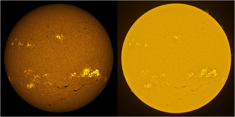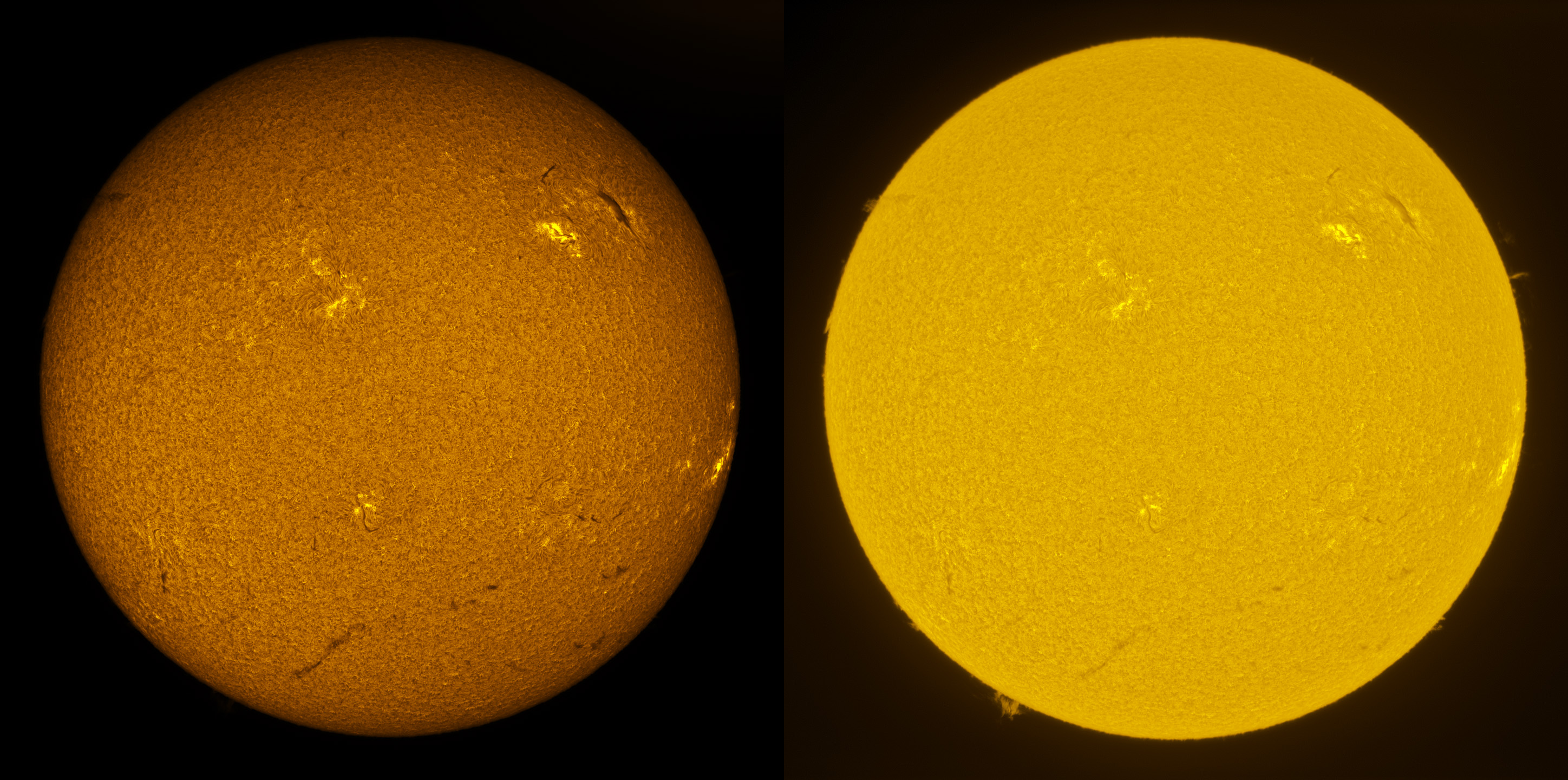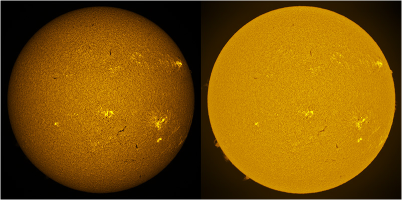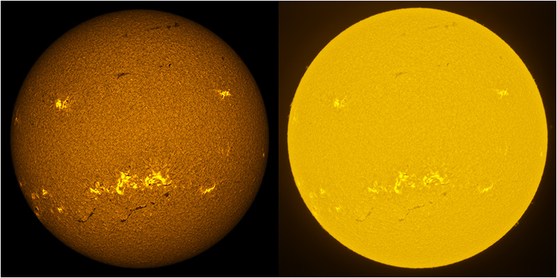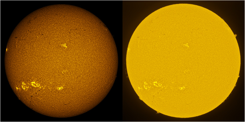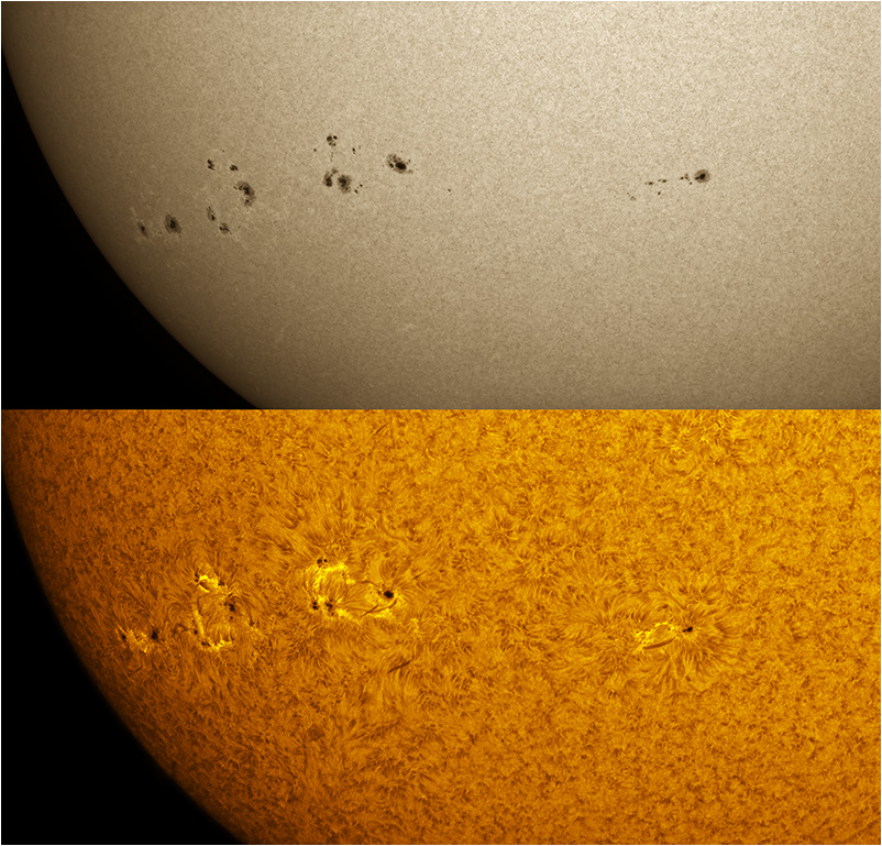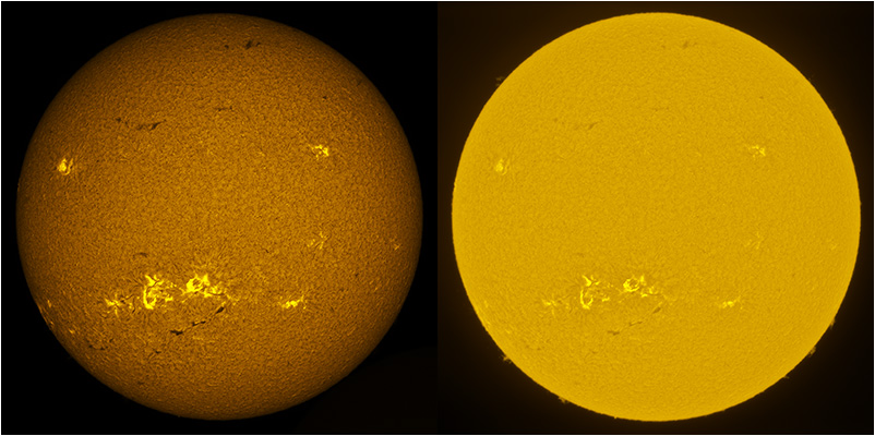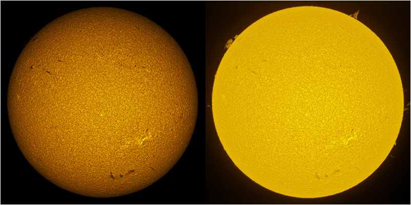 SUN (20211218) WL & H-alpha. LUNT152 F/6, B3400, X2 Barlow (@X1.4), PGR GRASSHOPPER 3 GS3-U3-28S4M