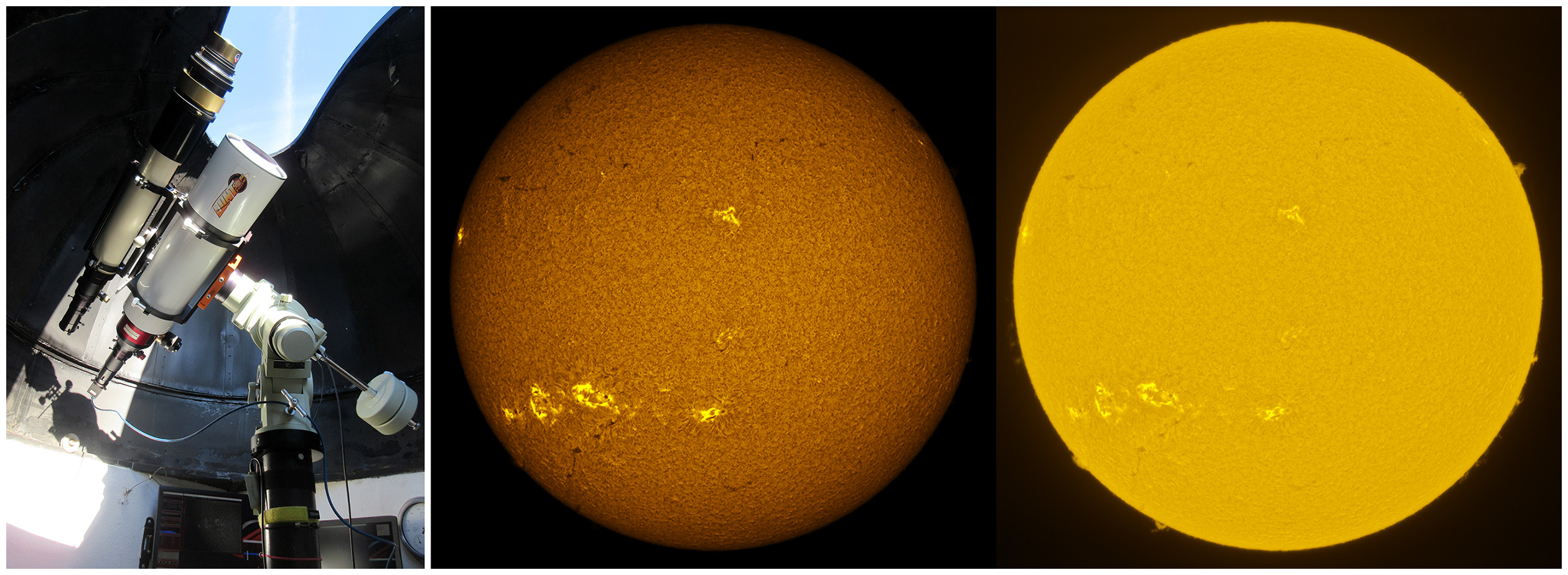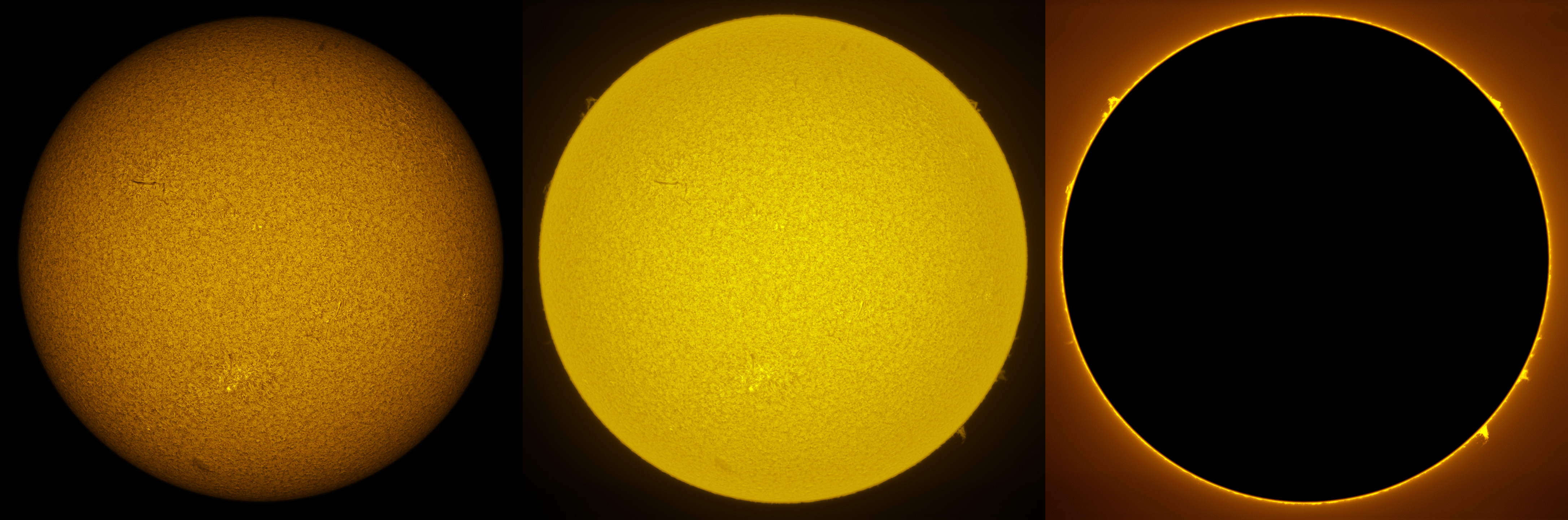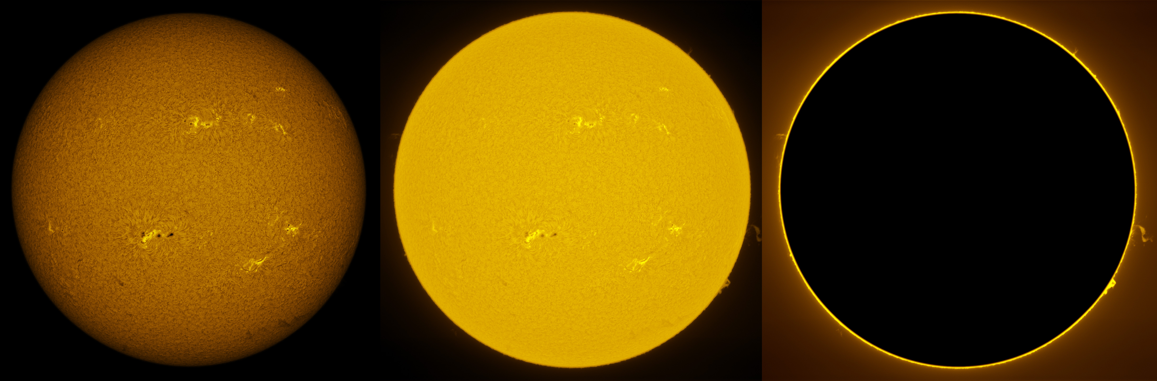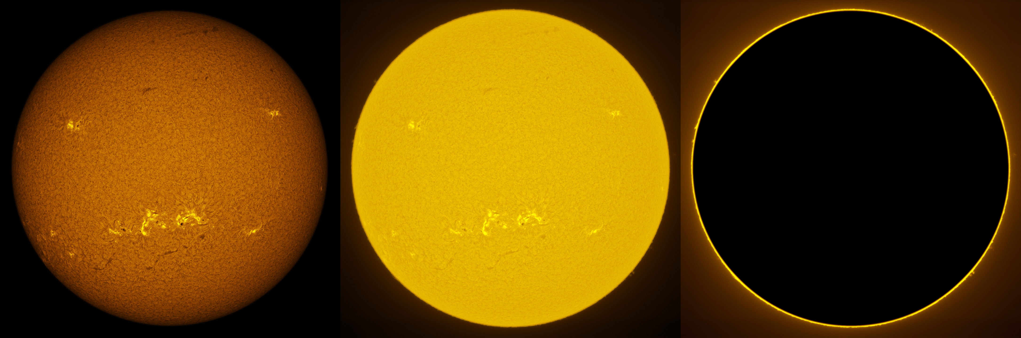 SUN (20211216) WL, CaK & H-alpha (09:30 UTC). TV101 F/5.4, LUNT 1200 CaK Module, SM60, BF30, PGR GRASSHOPPER 3 GS3-U3-28S4M