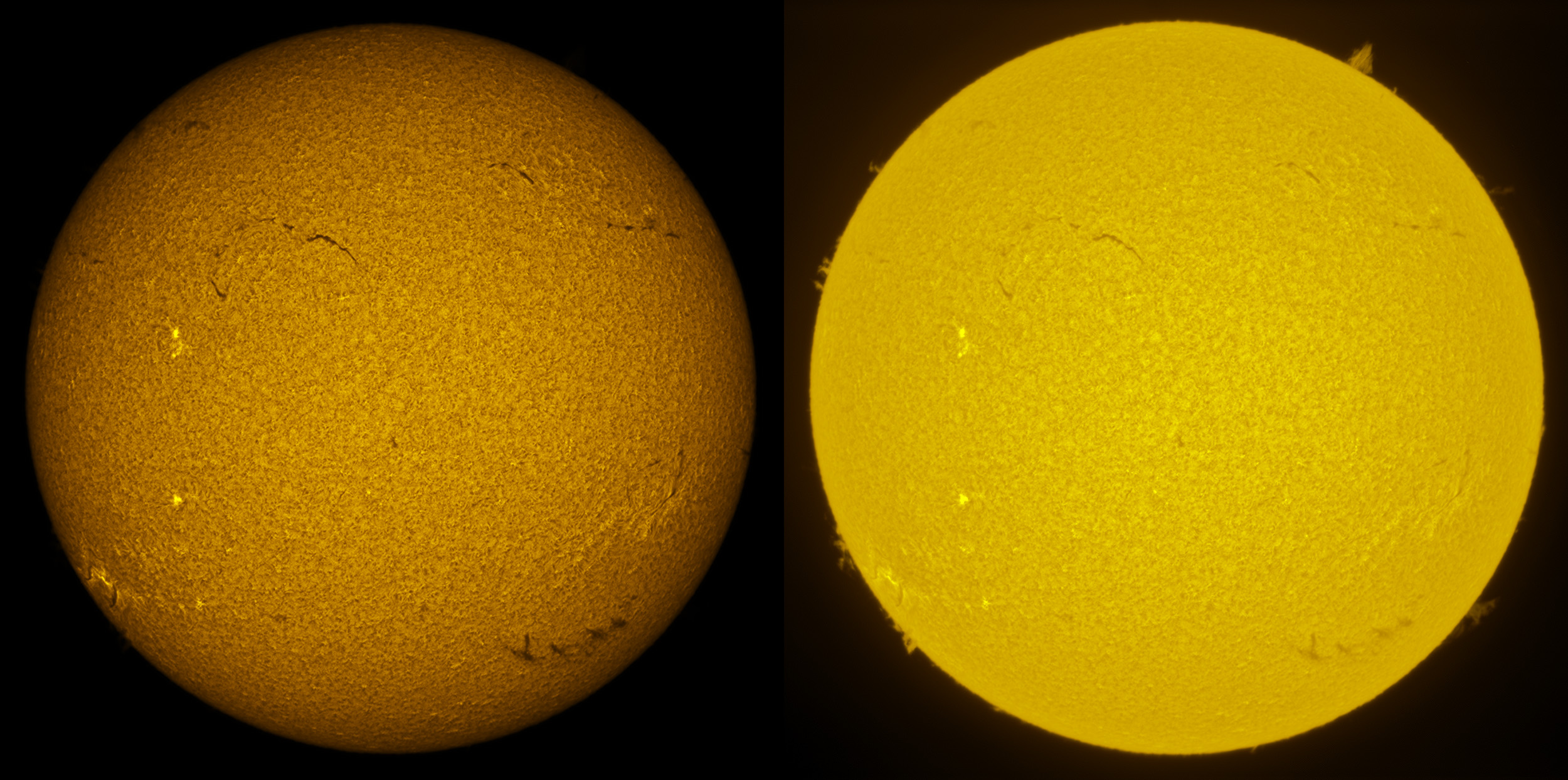 SUN (20211227) WL. LUNT152 F/6, X5 Powermate, ZWO ASI174MM, two-pane mosaic