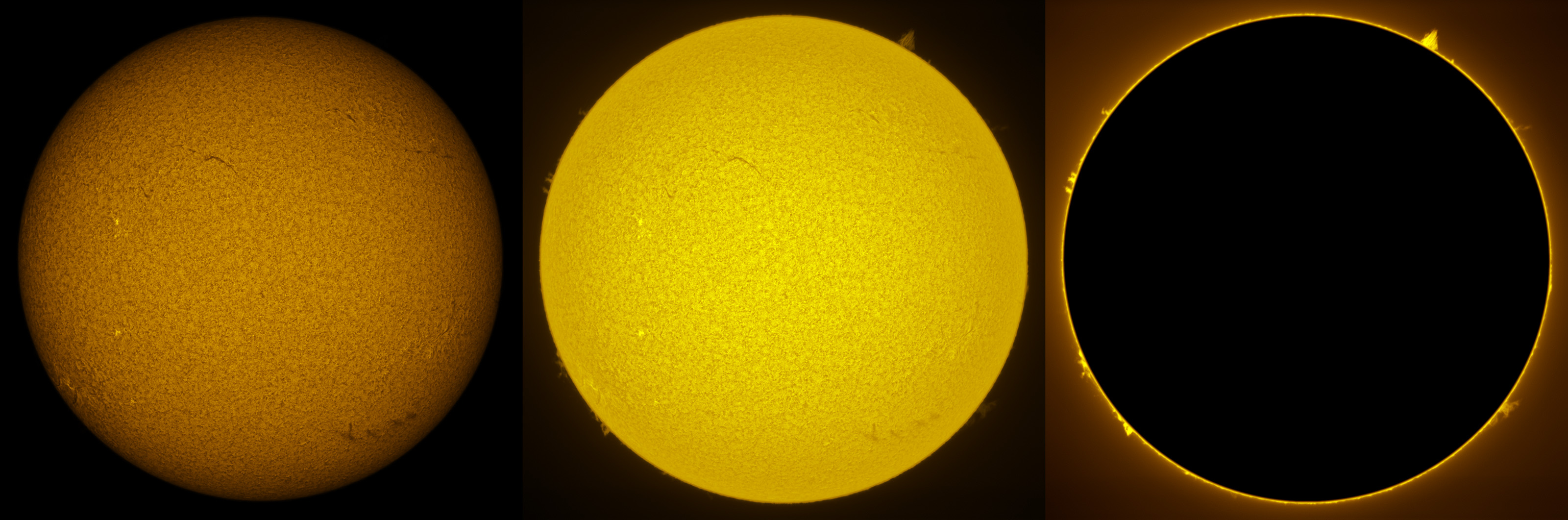 SUN (20211211) WL, CaK & H-alpha (09:00 UTC). TV101 F/5.4, LUNT 1200 CaK Module, SM60, BF30, PGR GRASSHOPPER 3 GS3-U3-28S4M