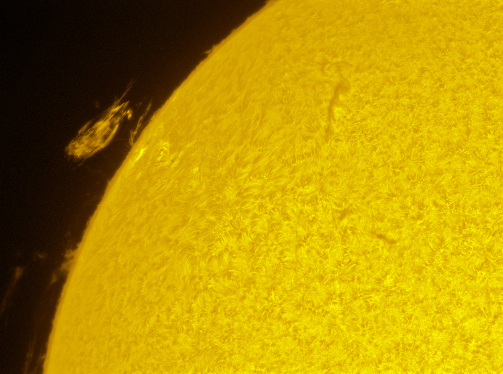 SUN (20220625) H-alpha (10:00 UTC). TV101 F/5.4, DS SM90II/SM60, BF30, PGR GRASSHOPPER 3 GS3-U3-28S4M
