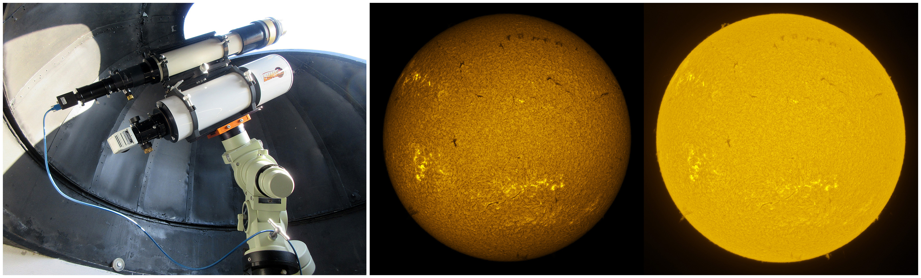SUN (20220627) WL, CaK & H-alpha (08:00 UTC). TV101 F/5.4, LUNT 1200 CaK Module, SM60, BF30, PGR GRASSHOPPER 3 GS3-U3-28S4M