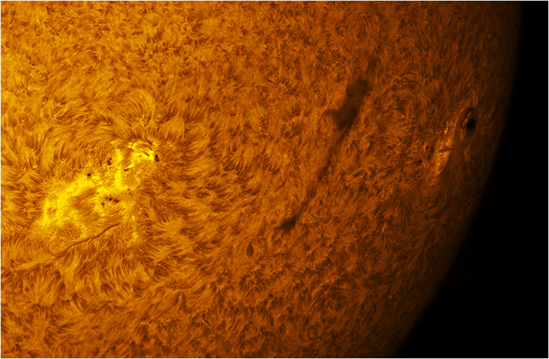 SUN (20220715) H-alpha (07:30 UTC). TV101 F/5.4, DS SM90II/SM60, BF30, PGR GRASSHOPPER 3 GS3-U3-28S4M