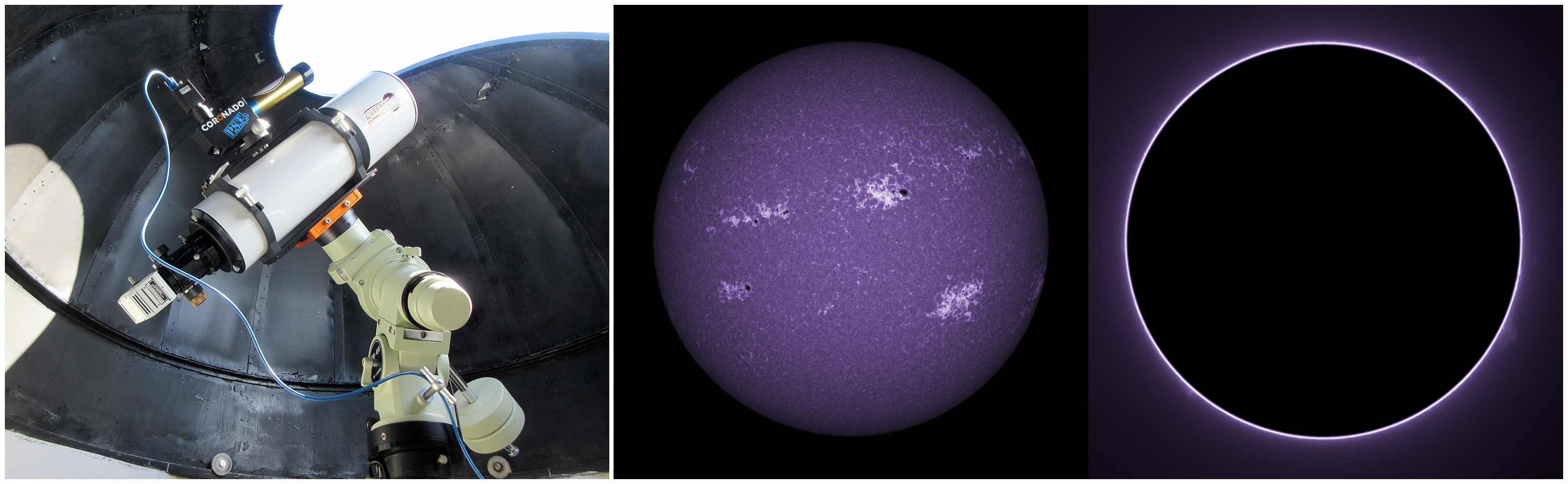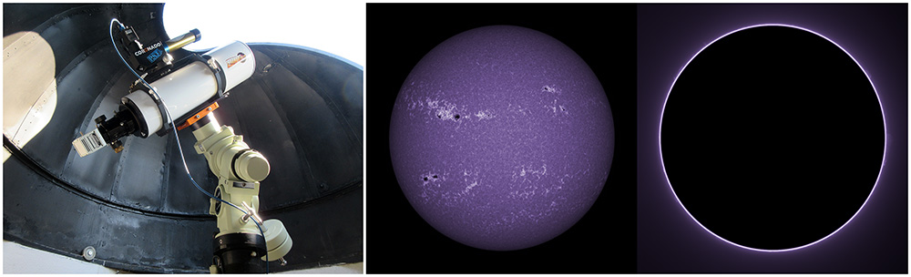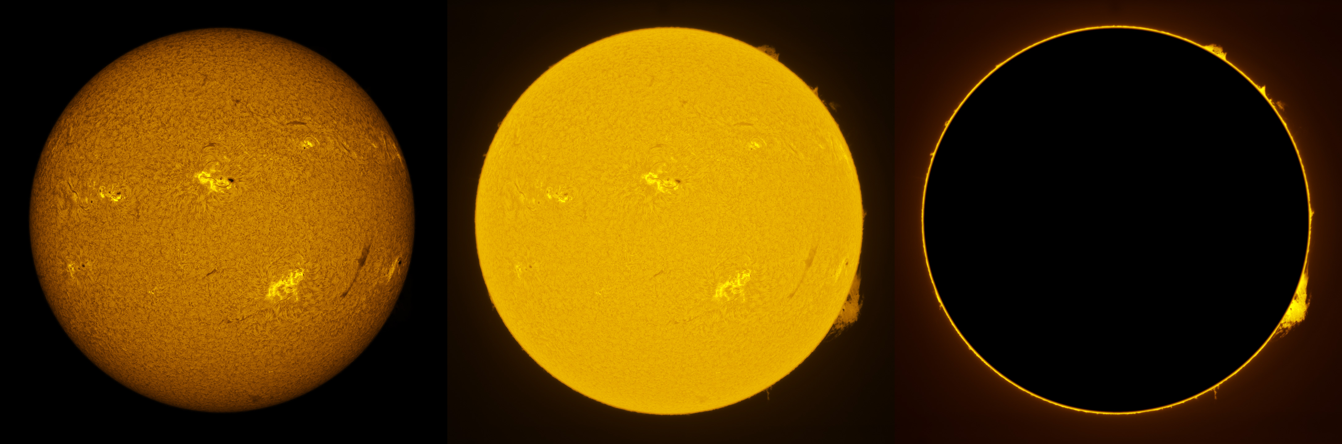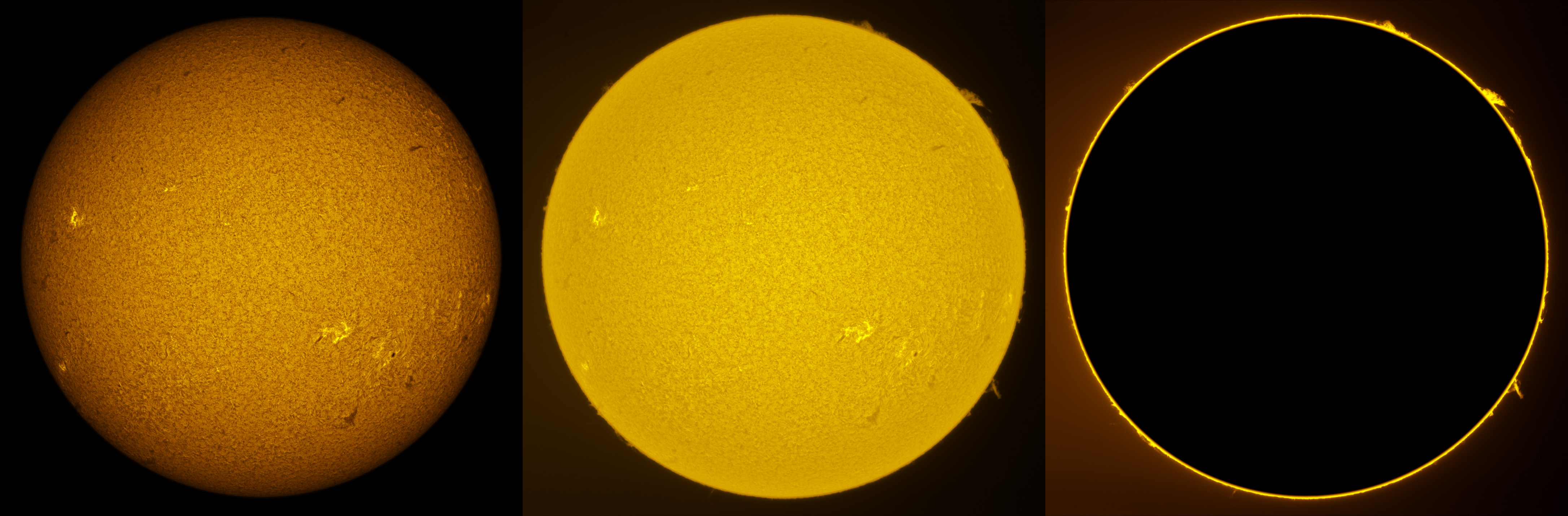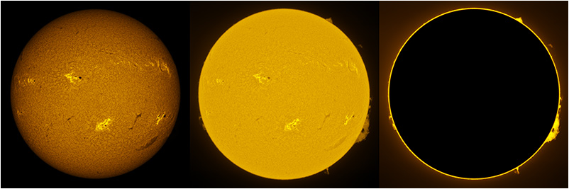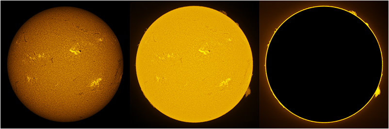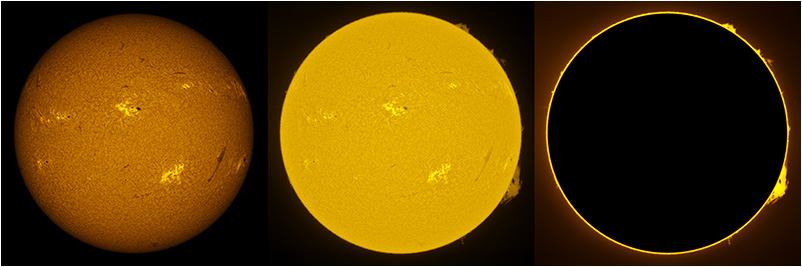 SUN (20220728) WL, CaK & H-alpha (08:00 UTC). TV101 F/5.4, LUNT 1200 CaK Module, SM60, BF30, PGR GRASSHOPPER 3 GS3-U3-28S4M