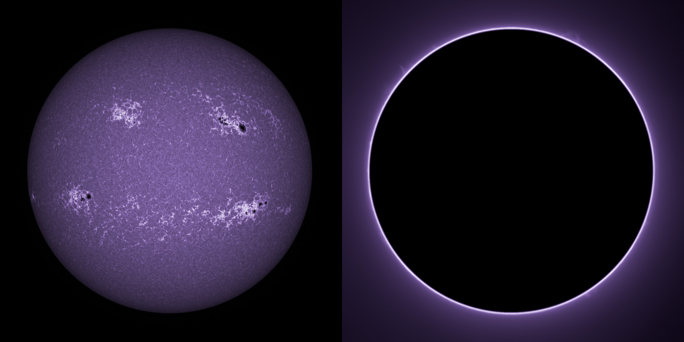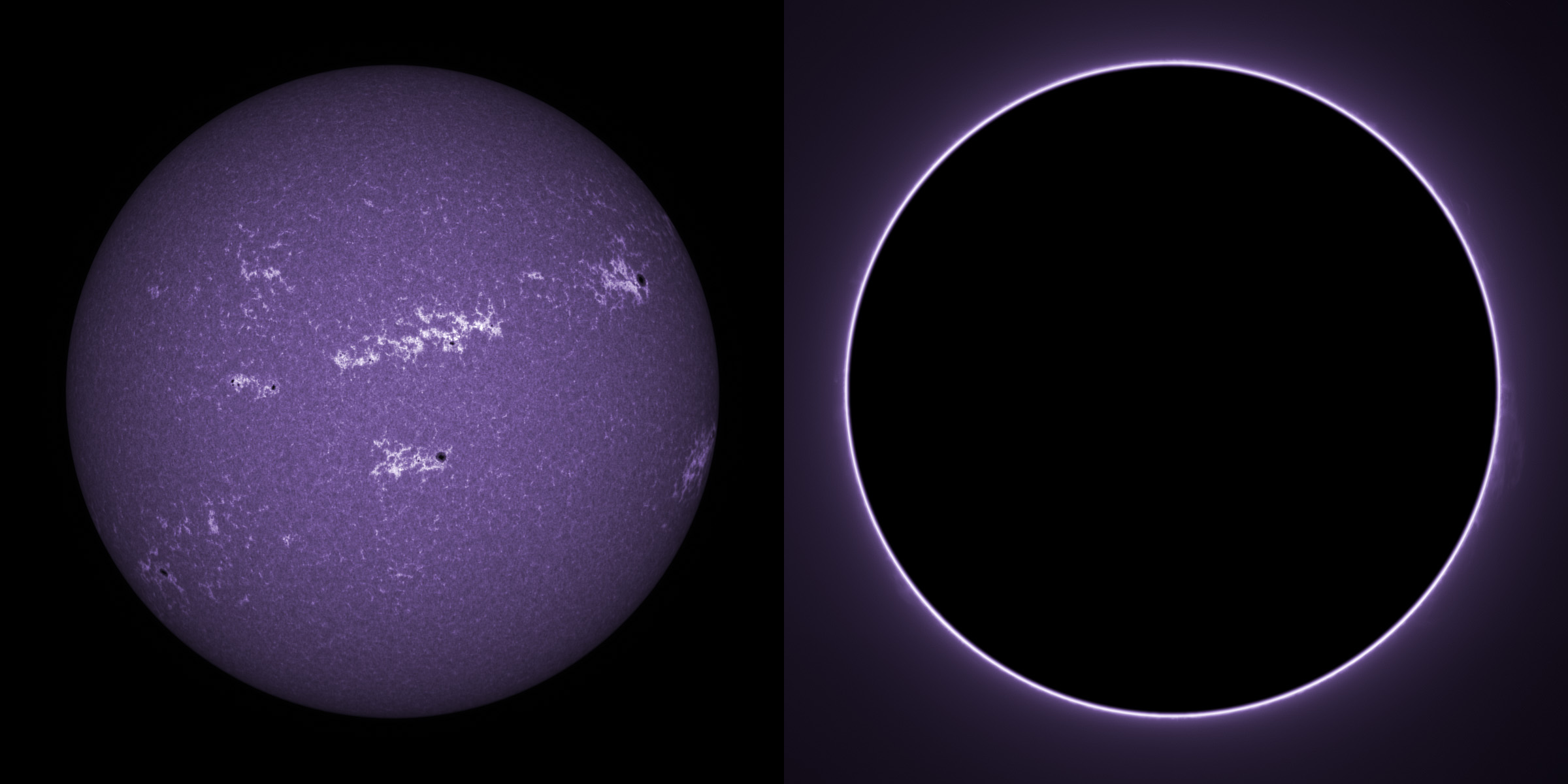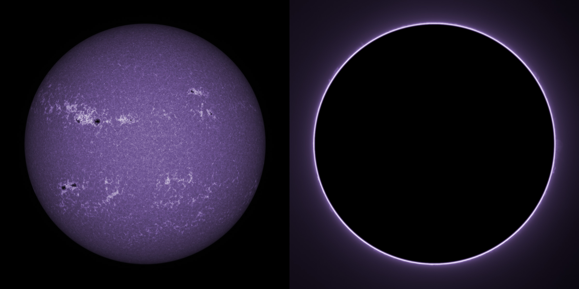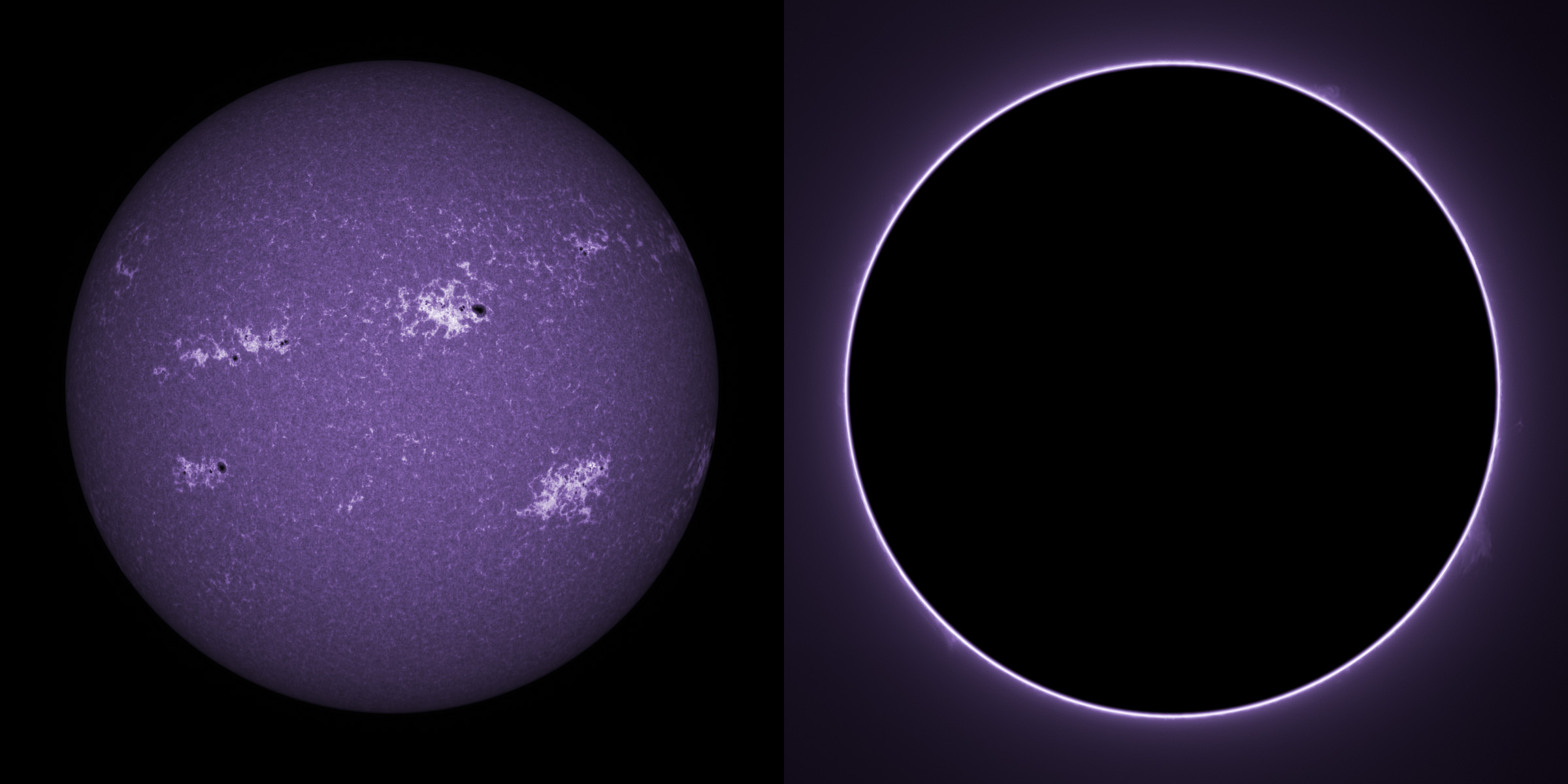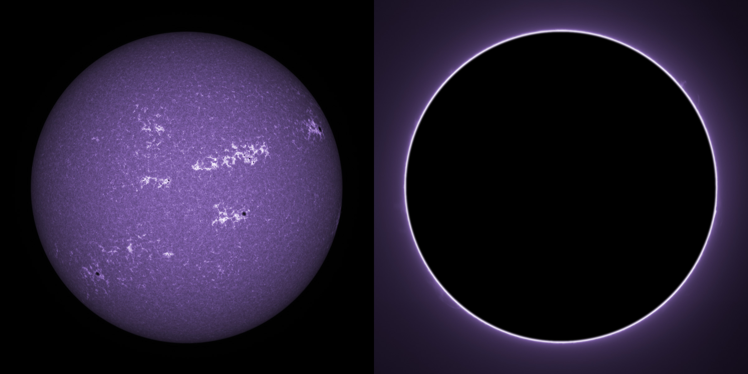 SUN (20220715) WL. LUNT152 F/6, X4 Powermate, ZWO ASI174MM, two-pane mosaic