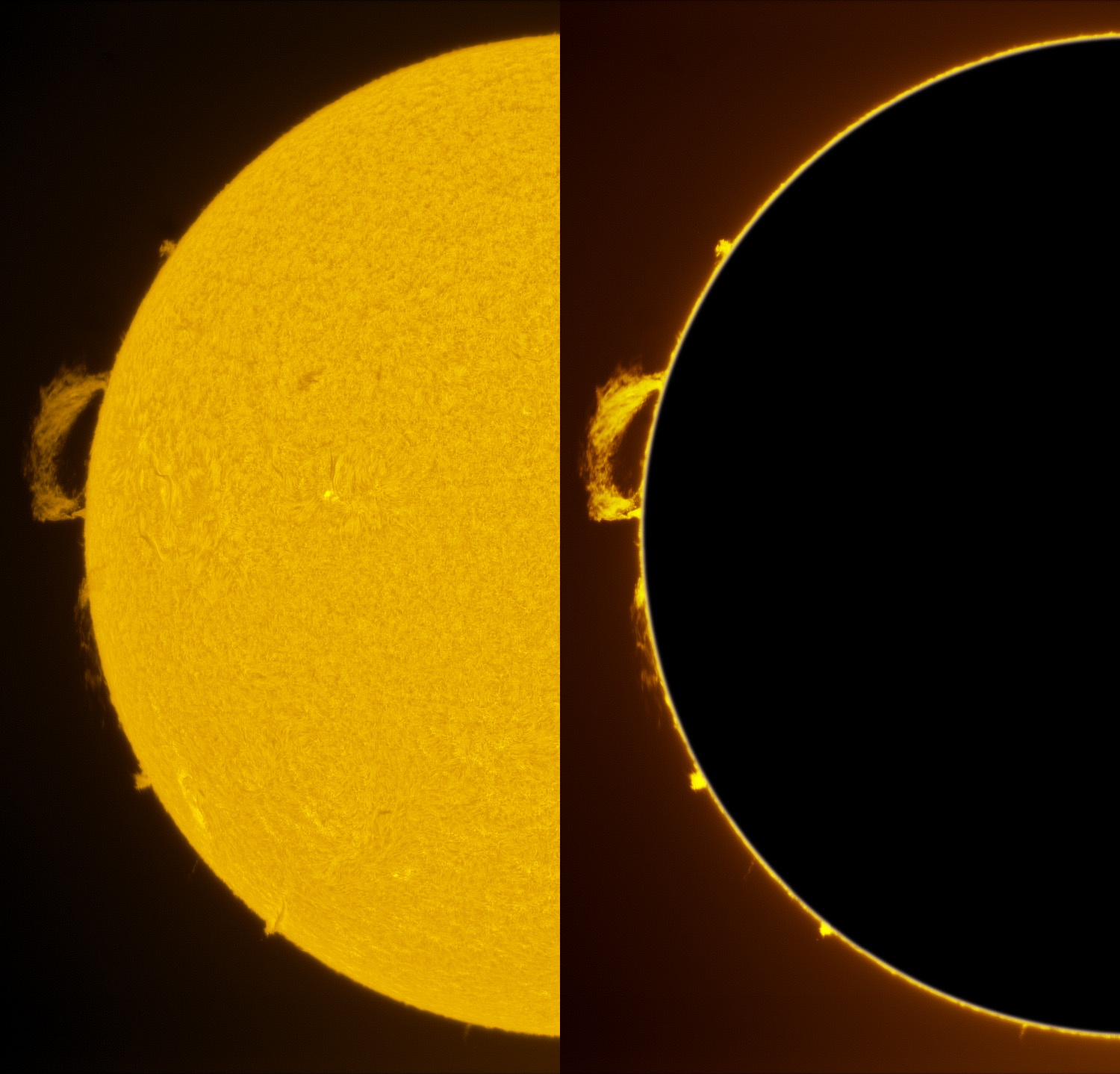 SUN (20220801) H-alpha. LUNT152 F/6, DAYSTAR Quark Chromosphere, ZWO ASI174MM